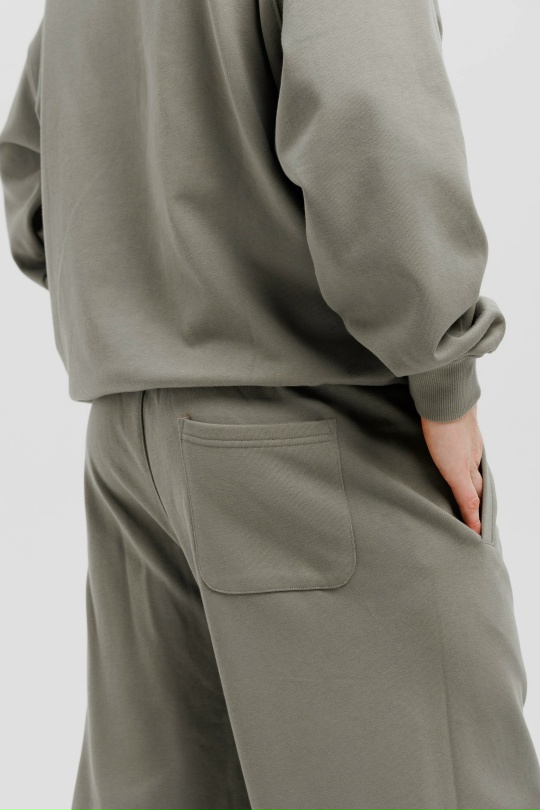 Приятный, дышащий материал. Материал - "классическая трёхнитка", которая хорошо подойдет для демисезонного использования с осени по начало лета. Костюм без подклада, оверсайз.