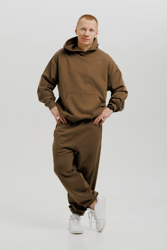 Приятный, дышащий материал. Материал - "классическая трёхнитка", которая хорошо подойдет для демисезонного использования с осени по начало лета. Костюм без подклада, оверсайз.