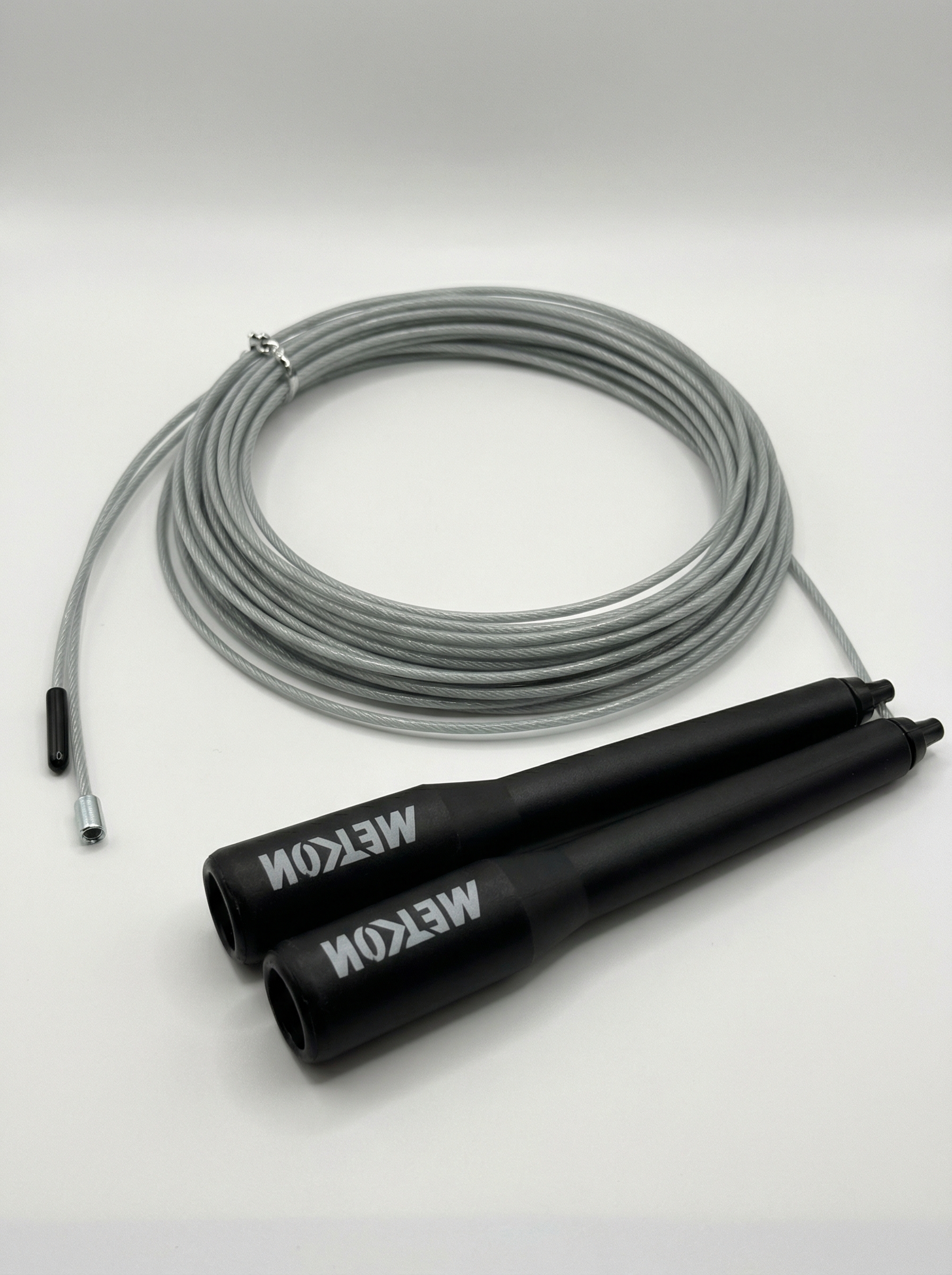 Скакалка METCON изготовлена ​​в США и оснащена тросиком в полиуретановой оплетке с возможностью регулировки под рост атлета. Алюминиевые втулки оснащены высокоскоростными подшипниками, также шарнирные соединения на концах втулок позволяют тросику беспрепятственно вращаться в любом направлении.